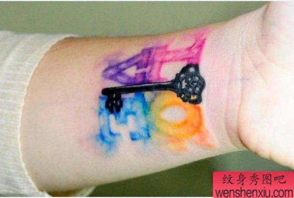 纹身图吧分享一张手腕彩色钥匙纹身图案
