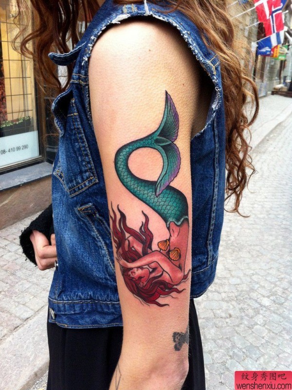 纹身图吧分享一张女性手臂美人鱼纹身图案