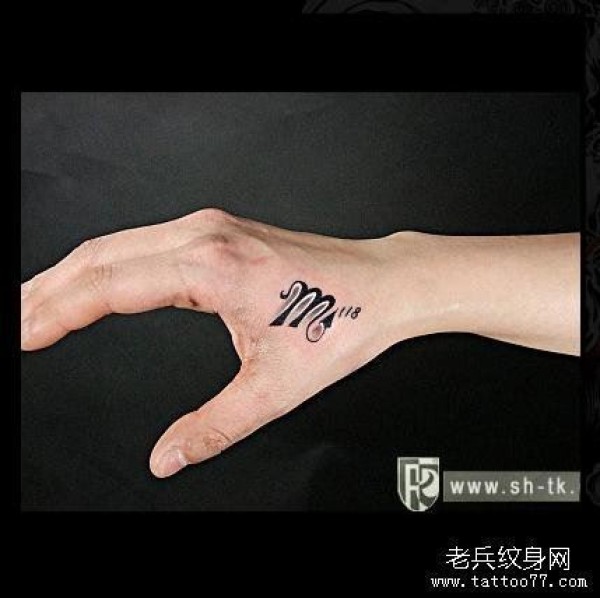 手部张扬的英文字M纹身图案