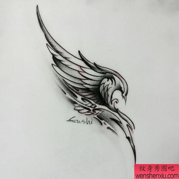 一张翅膀纹身手稿图案