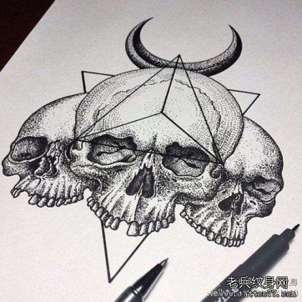 纹身图吧分享 一张欧美骷髅头纹身图案