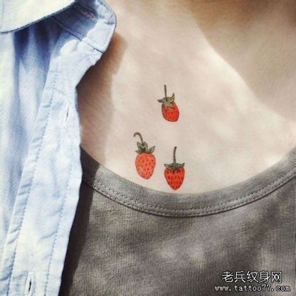 纹身图吧分享一张胸部卡通草莓纹身图案