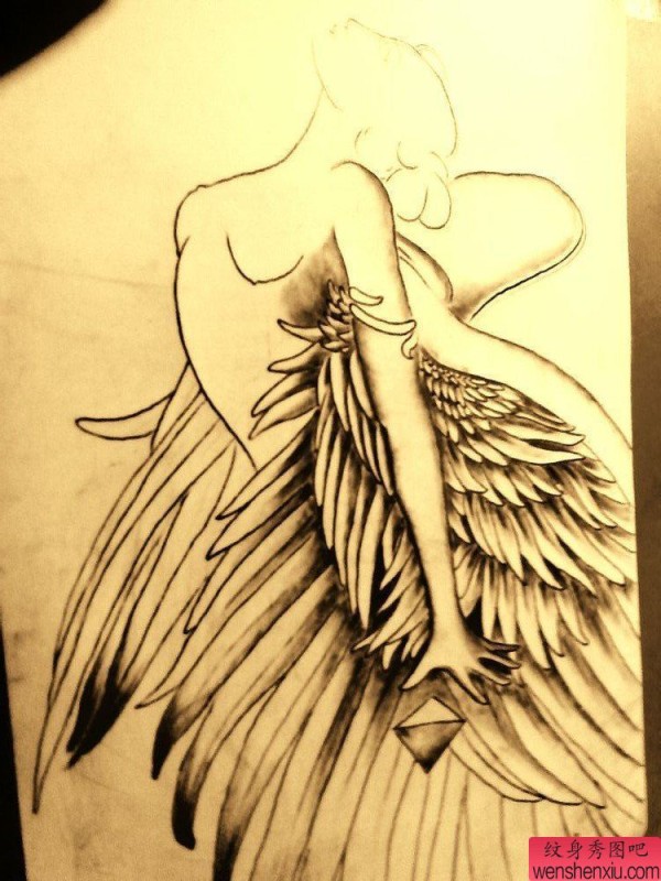 纹身图吧分享一张school天使纹身手稿图案