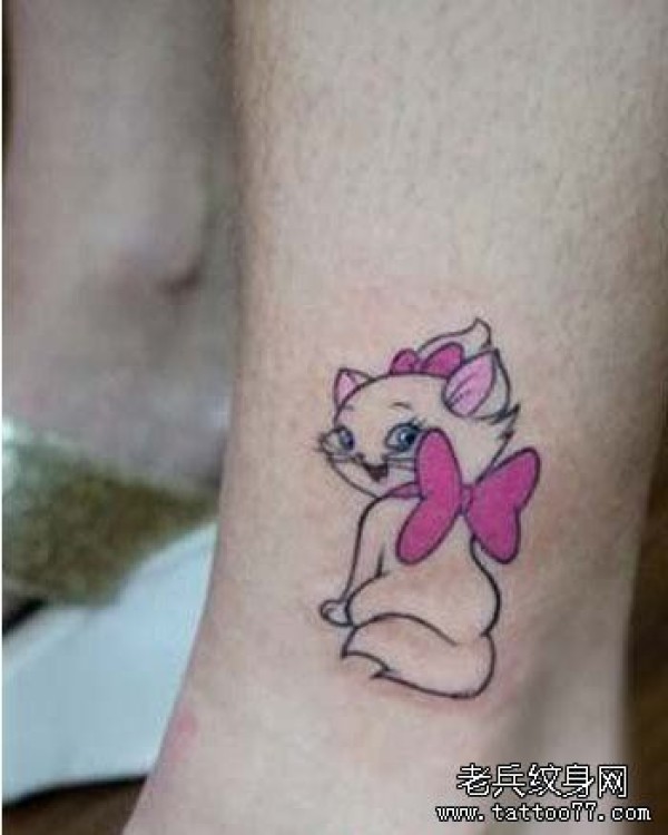 一张脚部卡通猫咪纹身图案