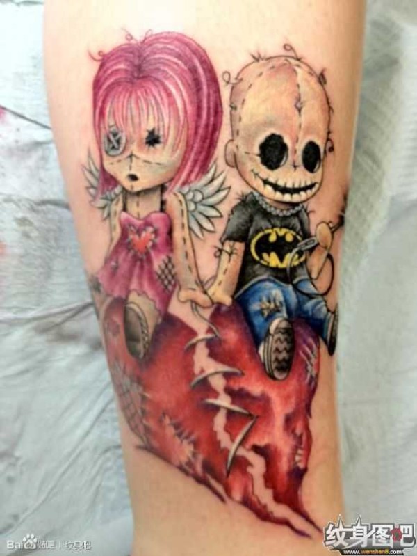 搞笑卡通纹身彩色线条鬼精灵电影里的纹身图案