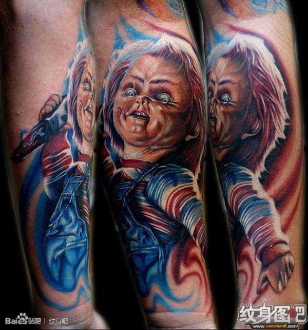 搞笑卡通纹身彩色线条鬼精灵电影里的纹身图案