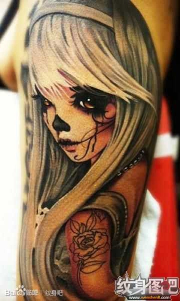 复古卡通红唇美女手臂纹身_卡通纹身图案大全_纹身图吧