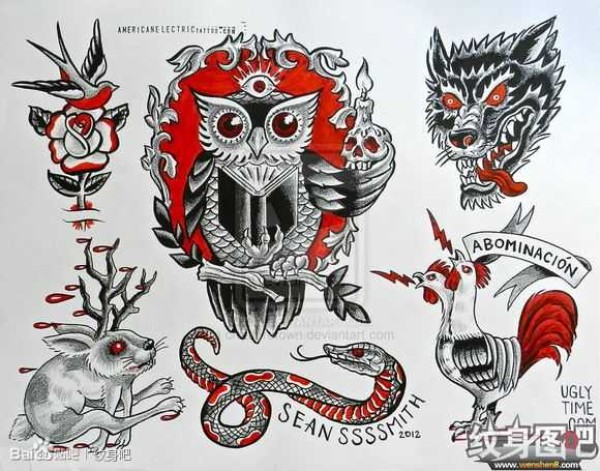 一组18张漂亮的欧美newschool动物纹身手稿图案