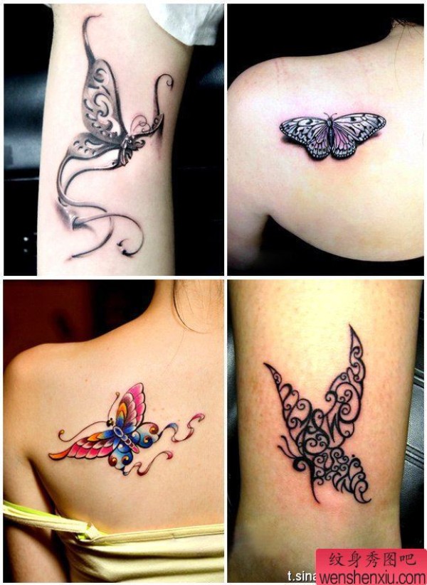 纹身图吧分享一套女性肩背蝴蝶纹身图案