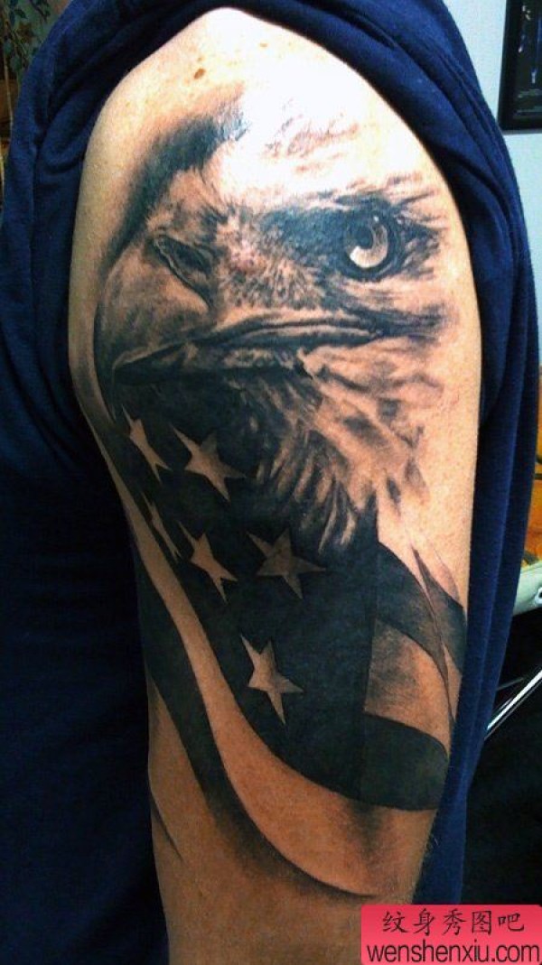纹身图吧分享一张大臂老鹰纹身图案