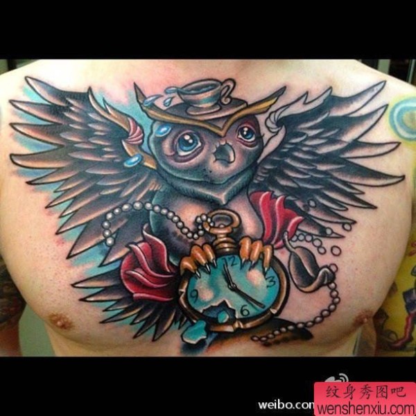 一张胸部彩色纹身图案