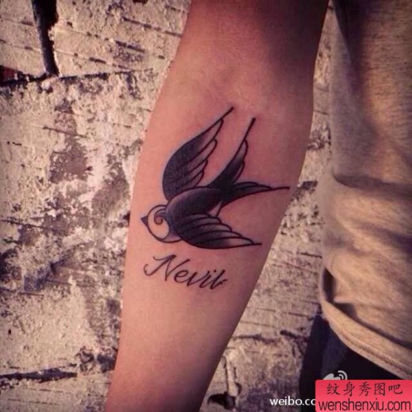 纹身图吧分享一张手臂燕子纹身图案