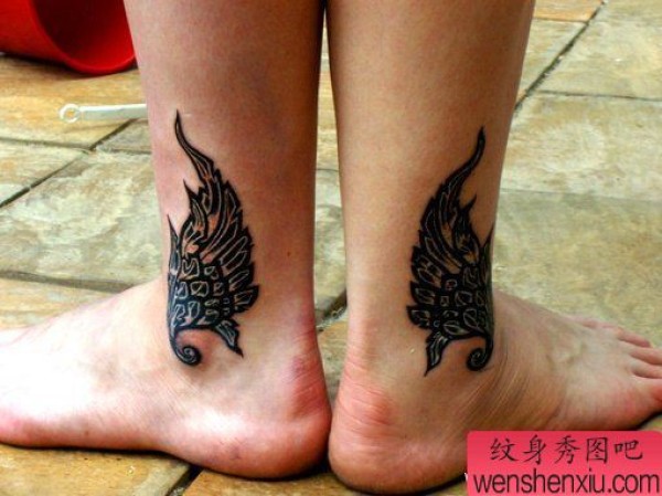 纹身图吧分享一张脚踝天使翅膀纹身图案