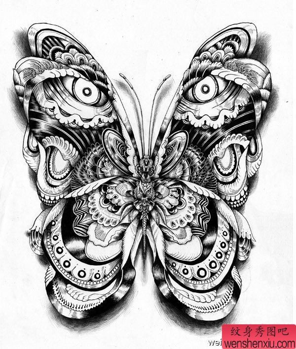 纹身图吧分享一张蝴蝶纹身手稿图案
