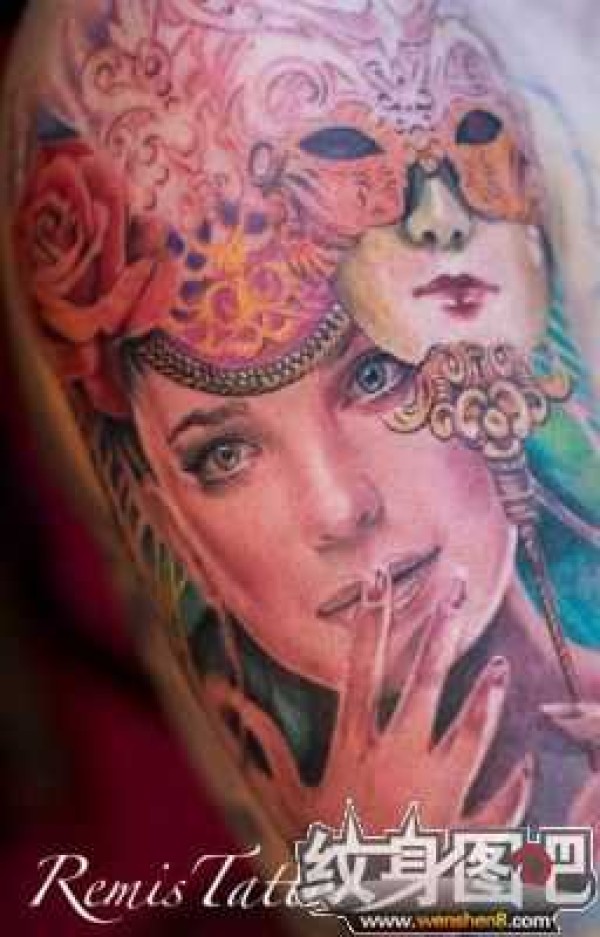 能面万媚纹身手稿_52张日式能剧面具纹身手稿图案素材欣赏