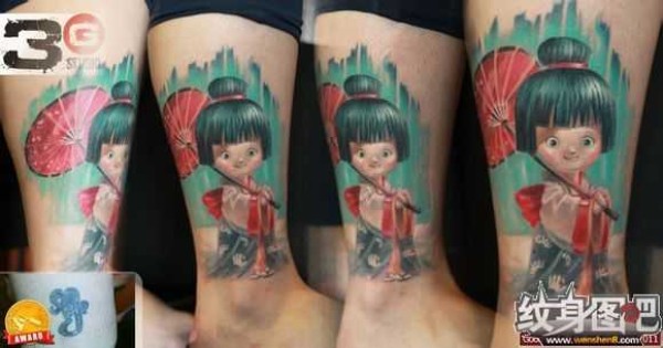 小腿艺妓纹身图案