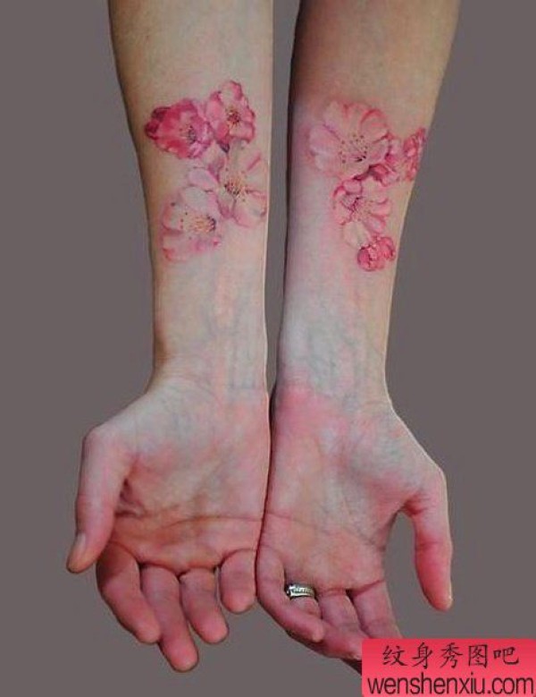 纹身图吧分享一张手臂彩色花纹身图案
