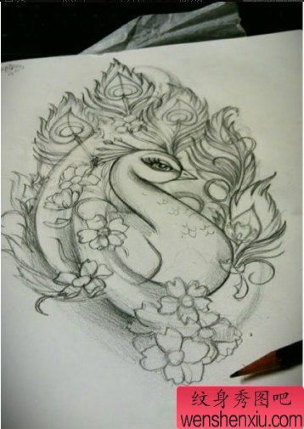纹身图吧分享一张孔雀纹身手稿图案