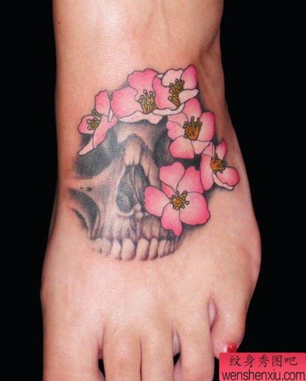 骷髅头樱花纹身图案