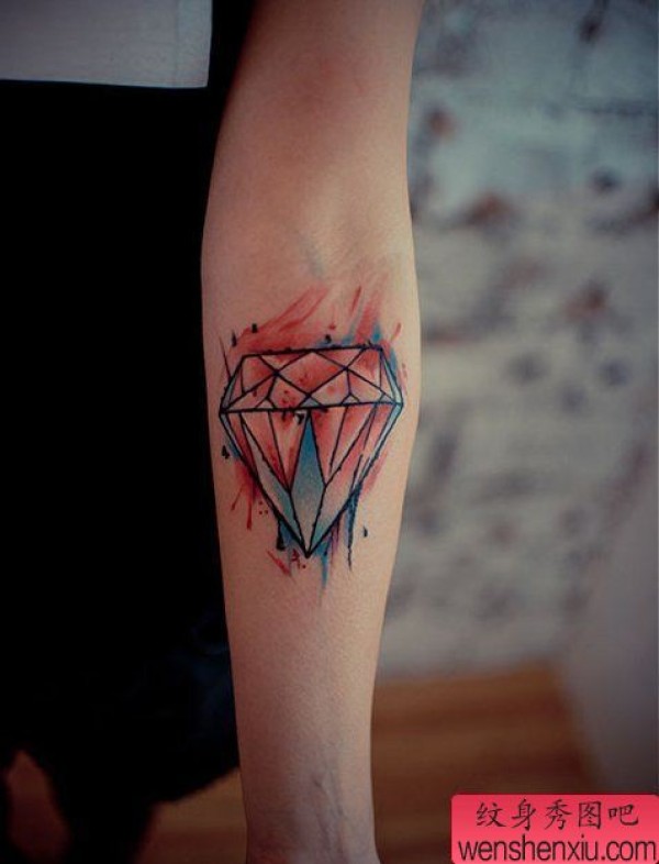 纹身图吧分享一张手臂彩色钻石纹身图案