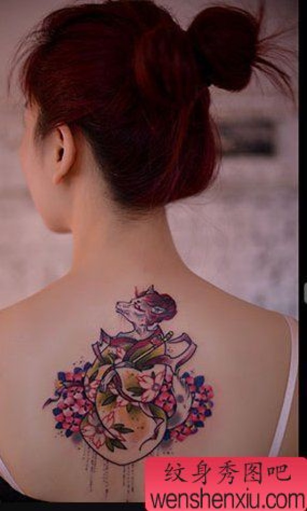 纹身图吧分享一张彩色性感肩背纹身图案