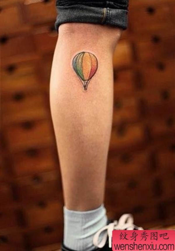 腿部彩色气球纹身图案