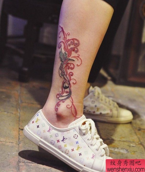 纹身图吧分享一张脚踝彩色凤凰纹身图案