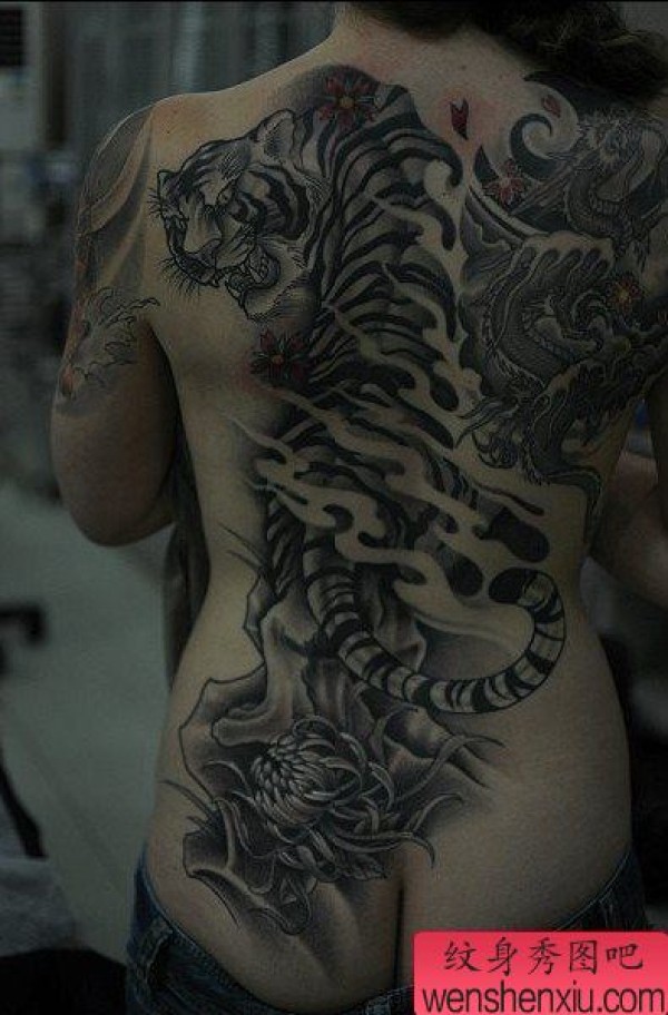 背部大图虎纹身图案