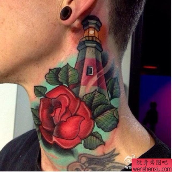 纹身图吧分享一张脖子school 灯塔纹身图案