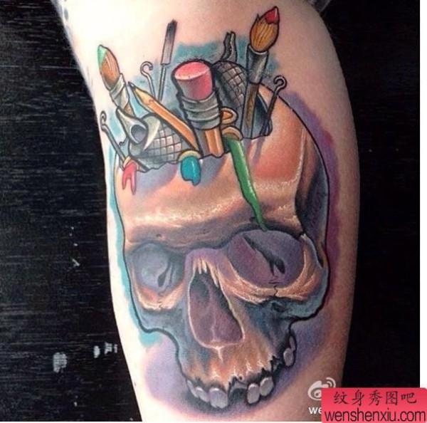 纹身图吧分享一张手臂骷髅头纹身图案