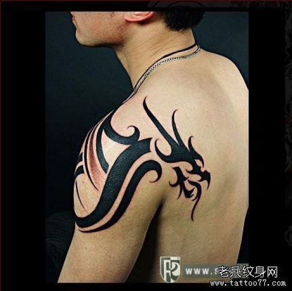 肩部很霸气的图腾披肩龙(1)纹身图案
