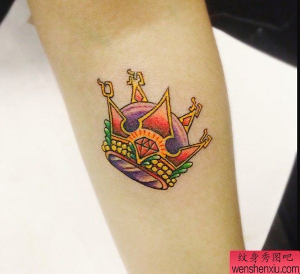 最好的纹身馆分享一张手臂彩色小皇冠纹身图案