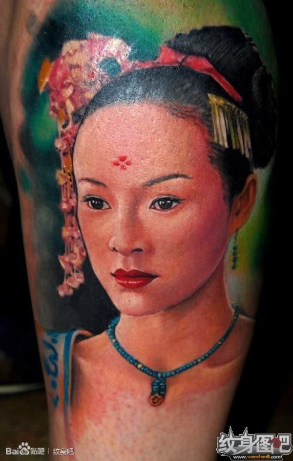 女性肩部肖像刺青_肖像纹身图案大全_纹身图吧