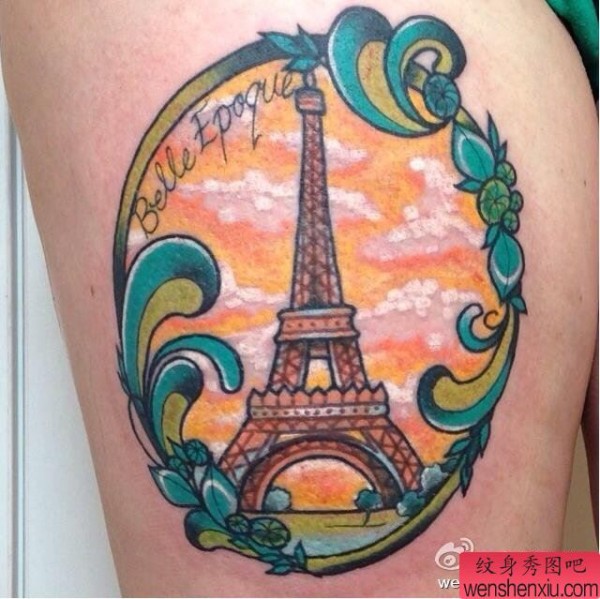 最好的纹身馆分享一张手臂彩色school埃菲尔纹身图案