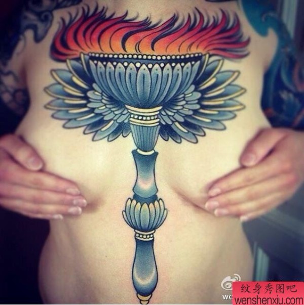 纹身图吧分享一张胸部火炬纹身图案