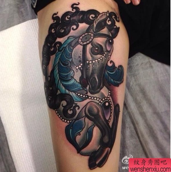 一张胳膊彩色school风格马纹身图案