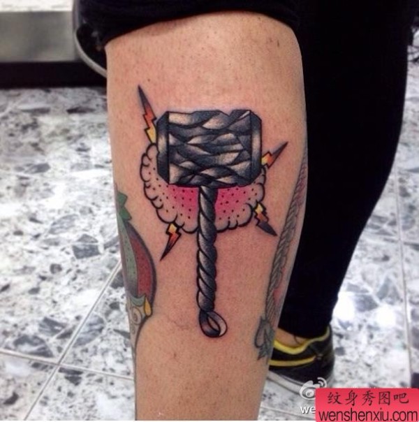 纹身图吧分享一张腿部school 雷神纹身图案