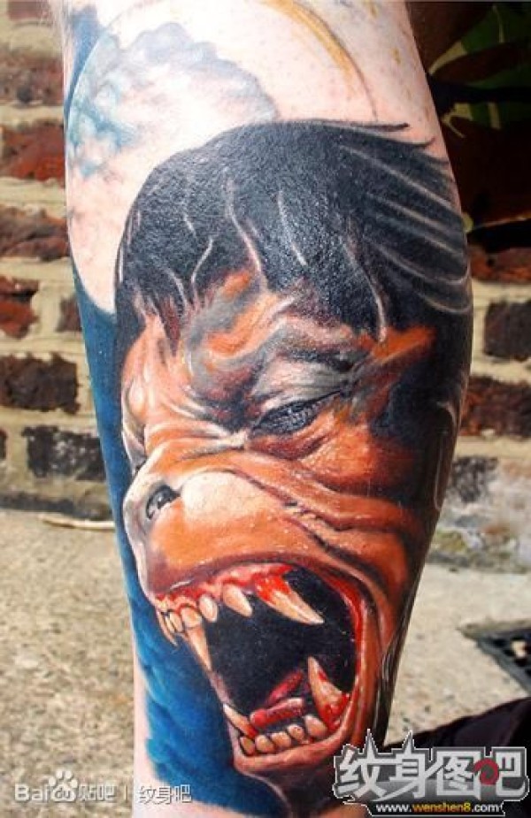 月光下的狼人肖像纹身