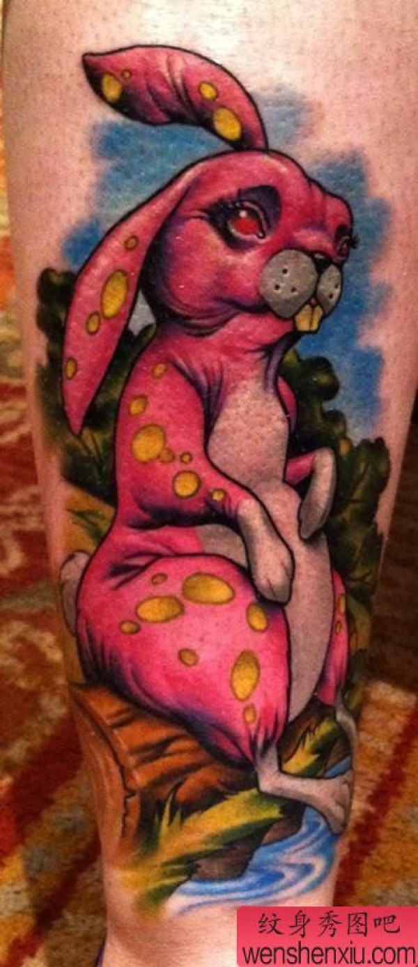 纹身图吧分享一张腿部彩色兔子纹身图案