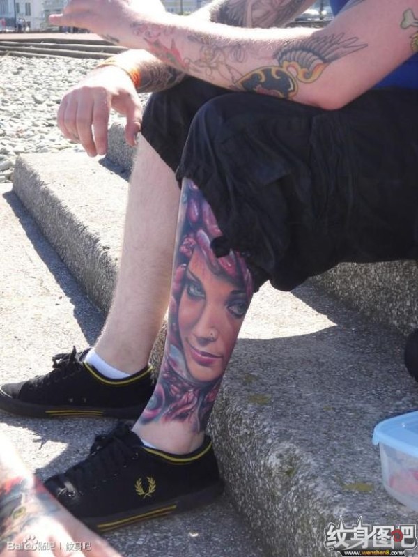 清纯女孩腿上可爱肖像纹身图片_肖像纹身图案大全_纹身图吧