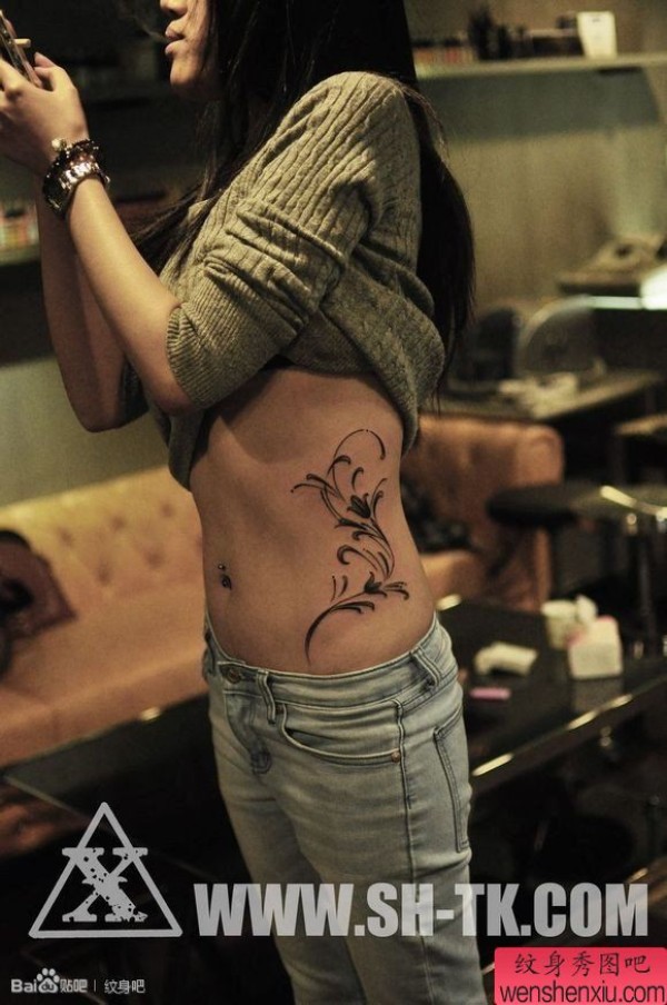 女性腰部诱人的勝条纹身图案