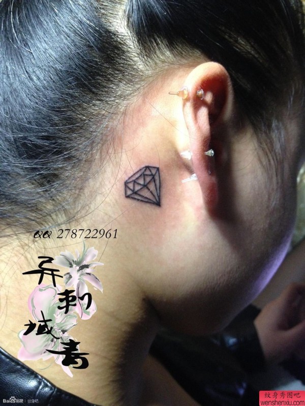 女性耳部小清新钻石纹身图案