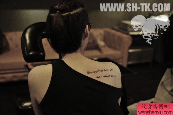 肩部双排英文字纹身图案
