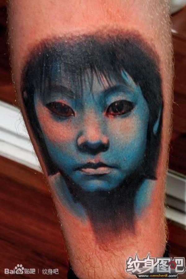 清纯女孩腿上可爱肖像纹身图片_肖像纹身图案大全_纹身图吧