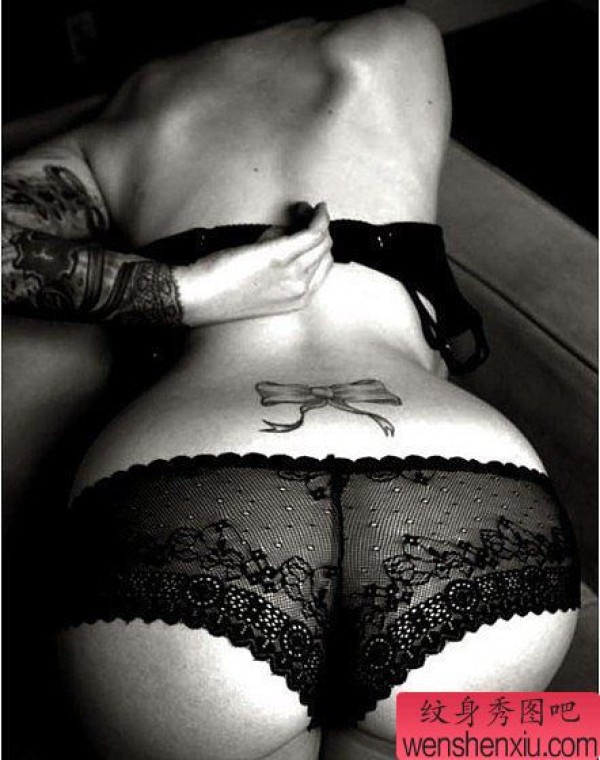 纹身图吧分享一张女性腰部蝴蝶结纹身图案