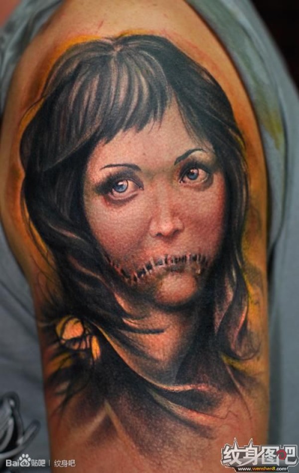 女性肩部肖像刺青_肖像纹身图案大全_纹身图吧