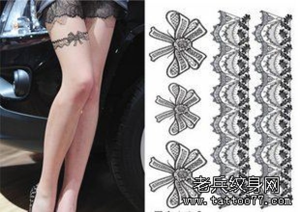纹身图吧分享一张女性腿部性感蕾丝纹身图案