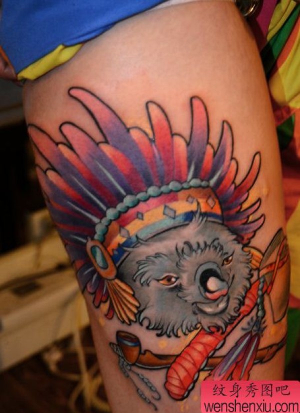 纹身图吧分享一张胳膊彩色动物纹身图案