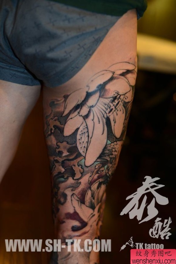 腿部包腿鱼莲花(3)纹身图案