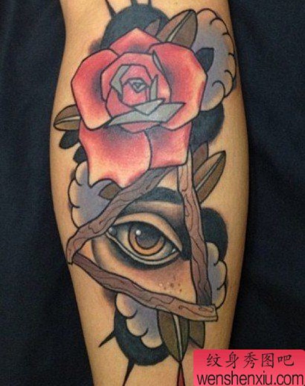 纹身图吧分享一张玫瑰花上帝之眼纹身图案